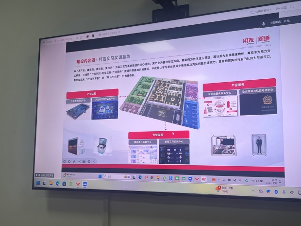 双方就产业学院建设方案深入探讨,围绕产业学院建设方案达成多项共识。我院明确将发挥现有学科专业、汽车行业背景、师资力量、良好的教学、实验场地和基础设施条件等优势,与用友公司共同建设集人才培养、科研服务于一体的现代产业学院,打造校企协同的产教融合示范样板。未来,双方将合作开发贴合我院专业特色的数字化教学项目,力争产出实践教学示范中心、教学成果奖等标志性成果。