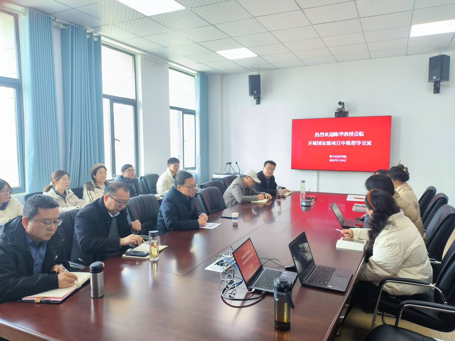 为提升学院教师国家级科研项目申报质量与竞争力,2026年3月9日下午,数字经济学院在8534会议室成功举办国家级项目申报指导专题讲座。本次讲座特邀中央财经大学陈华教授主讲,院长杨亚会、副院长李保林、副院长胡政发出席,学院国家级项目“应报尽报”人员及其他感兴趣的教师代表齐聚一堂,共同学习交流。