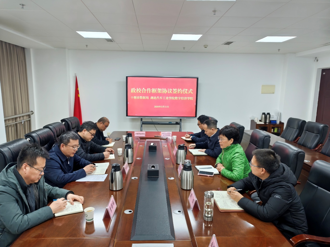 十堰市数据局副局长兰兆军、吴俊及相关科室负责人,数字经济学院院长杨亚会、党委书记王礼华、副院长李保林及数学与统计系教师代表共同出席签约仪式。