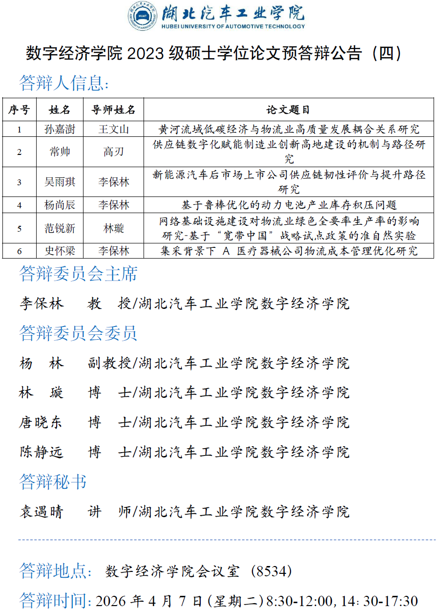 数字经济学院2023级硕士学位论文预答辩公告(四)