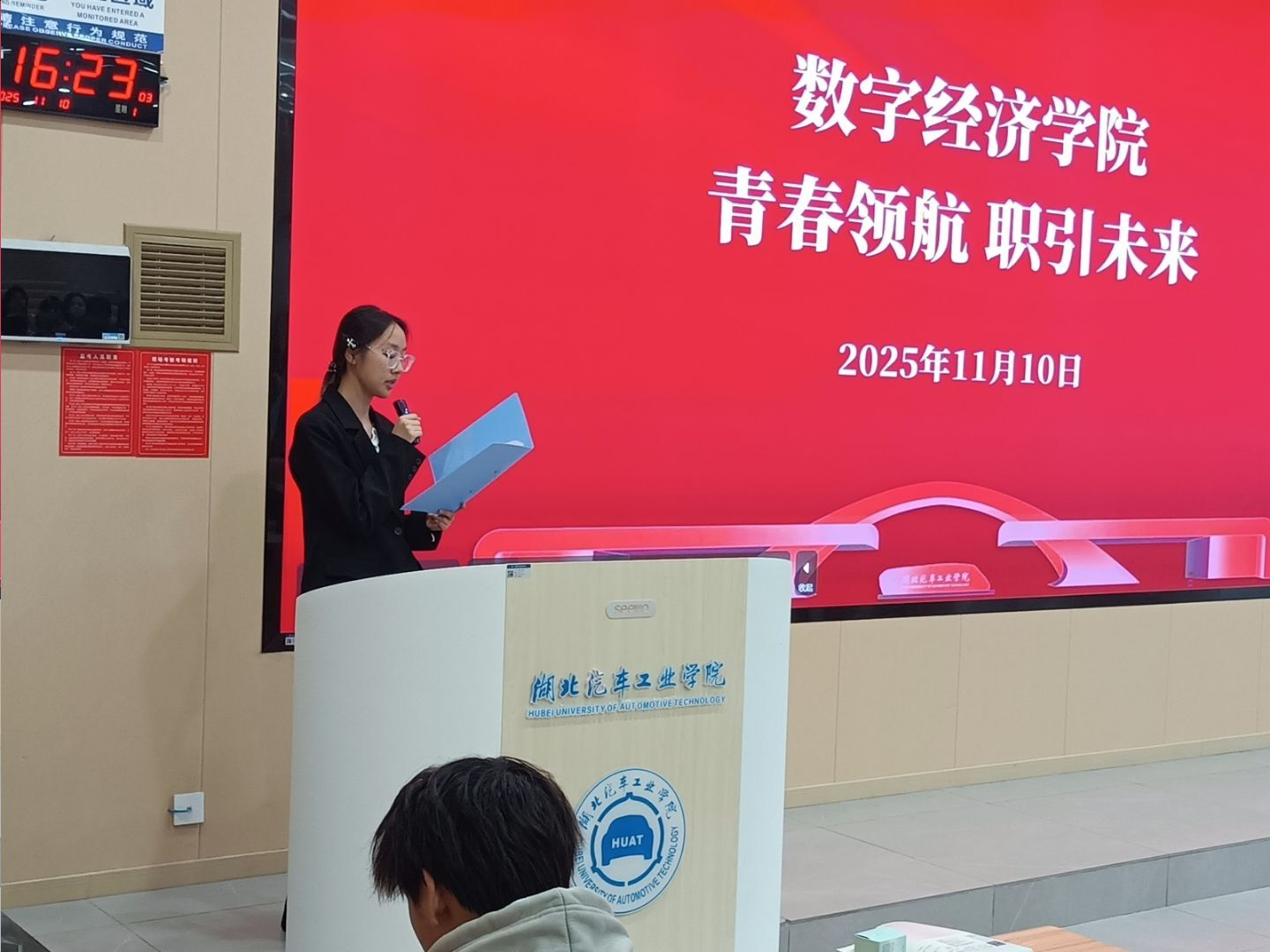 为助力学子明晰职业方向、提升规划能力与求职竞争力,11月10日下午,数字经济学院大学生职业规划大赛初赛在8106教室成功举办。数字经济学院党委副书记余厚德、学工办主任吴文斌、团委副书记徐鑫出席活动并担任评委,众多怀揣职业理想的学子齐聚赛场,围绕未来发展蓝图展开精彩角逐。