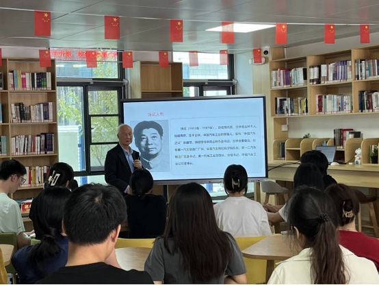 2025年9月25日,湖北汽车工业学院数字经济学院邀请校关工委副主任邱春正老先生,作“五老讲大国工匠故事”主题讲座。讲座在梅园一站式学生社区举行。